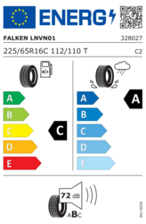 Le pneu Falken Linam VAN01 225/65 R16C 112/110T 8PR est conçu pour les utilitaires, vans, et camions légers. Grâce à la bande de protection du flanc, il est ultra-solide et résistant aux chocs latéraux sur les trottoirs lors des livraisons citadines. Polyvalent, sur route, il offre une très bonne adhérence sur routes mouillées. La distance de freinage est réduite puisque ce pneumatique est doté de technologie 4D-Nano Design. La structure de sa carcasse large et plate lui confère une traction maximale et une usure régulière même si le véhicule est chargé.